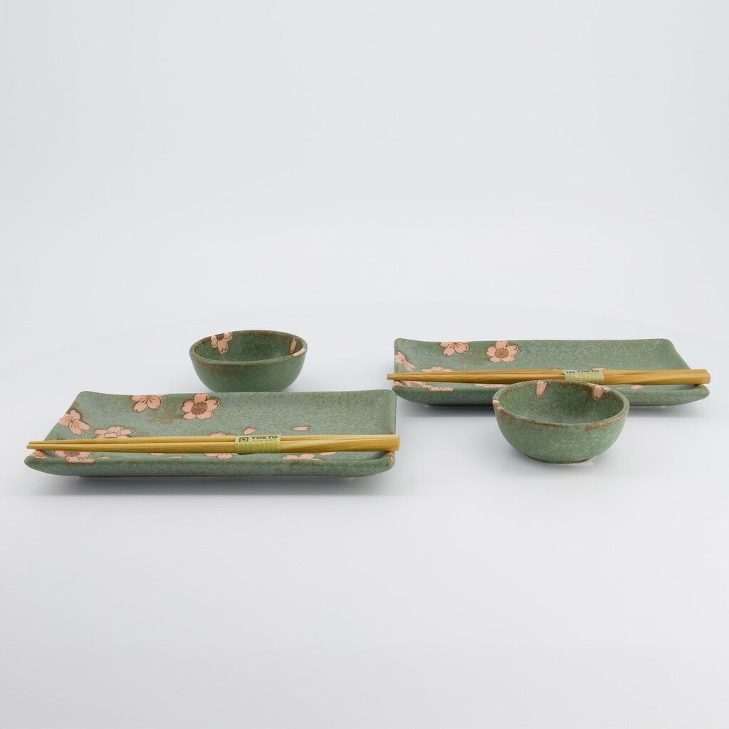 Tokyo Design Studio Sakura Sushi Giftset 6pcs 22x13x2cm & 8.5x3.4cm Green - 33761